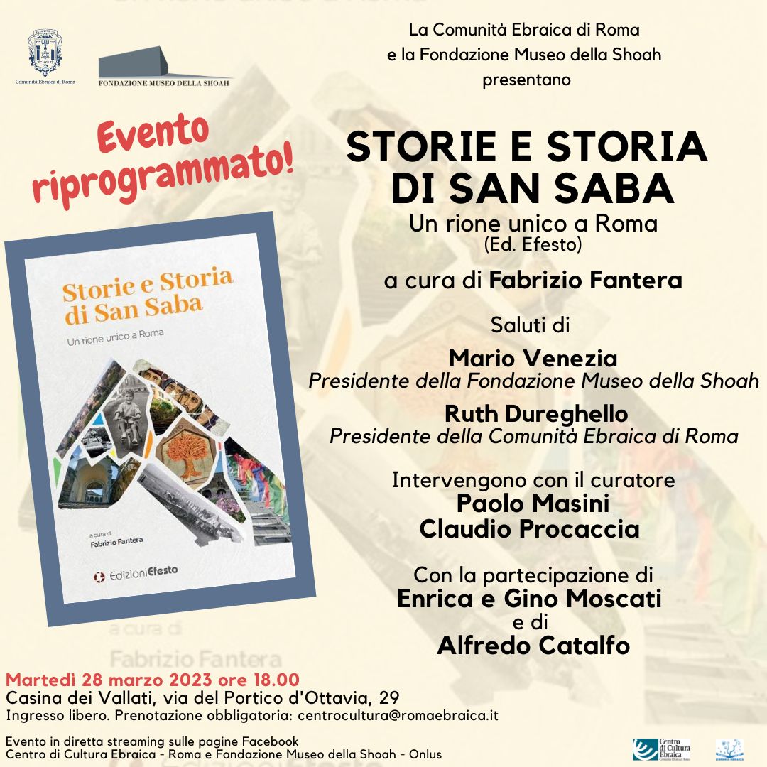 Ingresso libero. Prenotazione obbligatoria: centrocultura@romaebraica.it